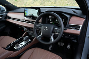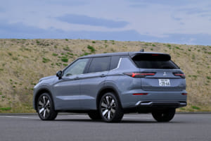 2024年に大規模なマイナーチェンジを受けた三菱「アウトランダーPHEV」は、EV航続距離が100kmを超える102kmへと伸長し、EV走行の領域がさらに拡大している。長年にわたる熟成を感じさせる仕上がりで、EV走行とエンジン駆動の切り替わりも極めてなめらか。日常領域ではほとんどEVのような感覚で乗れそうだ。巨躯を感じさせないスムーズさに加え、力強い安定感と加速が非常に印象的だった。PHEVをコア技術と位置づける三菱ならではの洗練ぶりである。