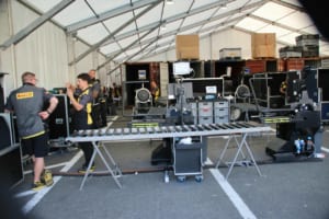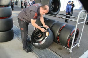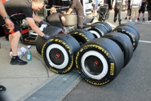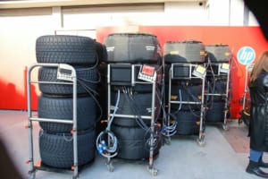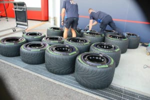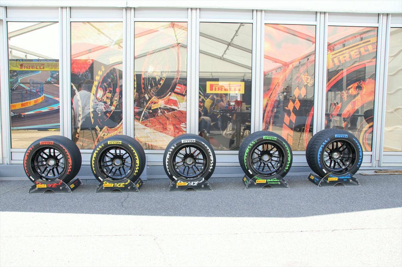 F1にワンメイクタイヤを供給しているピレリのホスピタリティにはタイヤが並べられ、コンパウンドごとの違いを実際に触って確かめることができる。またパドック内にはタイヤフィッティングセンターも設置されており、ここではチームへとタイヤを供給する拠点となっている。