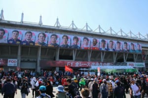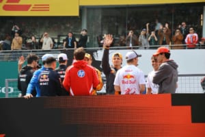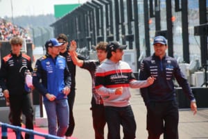 日曜日の決勝レース直前に行われるドライバーズパレードでは、特設バスに乗ってドライバーたちがコースを一周する。緊張感が高まる直前でありながら、ドライバーたちはリラックスした笑顔でスタンドに向かって手を振りながら、グランドスタンドを埋め尽くす色とりどりのチームフラッグと、それに応えるドライバーたちの姿は、ファンと選手の心がひとつになる感動的な瞬間だ。