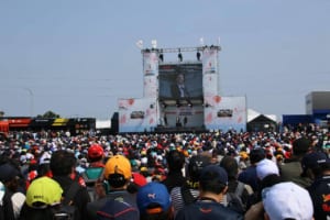 メインゲートをくぐると真っ先に飛び込んでくるのが、巨大なイベントエリア「GPスクエア」だ。特設ステージでは、各チームの現役ドライバーやチーム代表が登壇するトークショーが連日開催されたが、その模様を間近で観ようと朝早くからゲート前には長蛇の列が。憧れのドライバーたちがリラックスした表情で語る裏話に、集まった数千人のファンからは大きな歓声と笑い声が上がっていた。