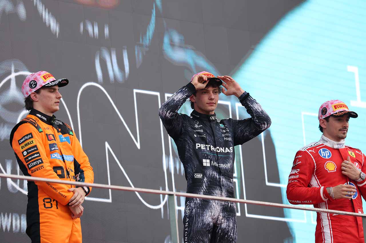ピレリはF1の表彰式でドライバーが被る「ウィナーズキャップ」を提供しているが、今回は特別に日本GPらしい桜の模様があしらわれたデザインを採用。表彰台でもひときわ注目されていた。