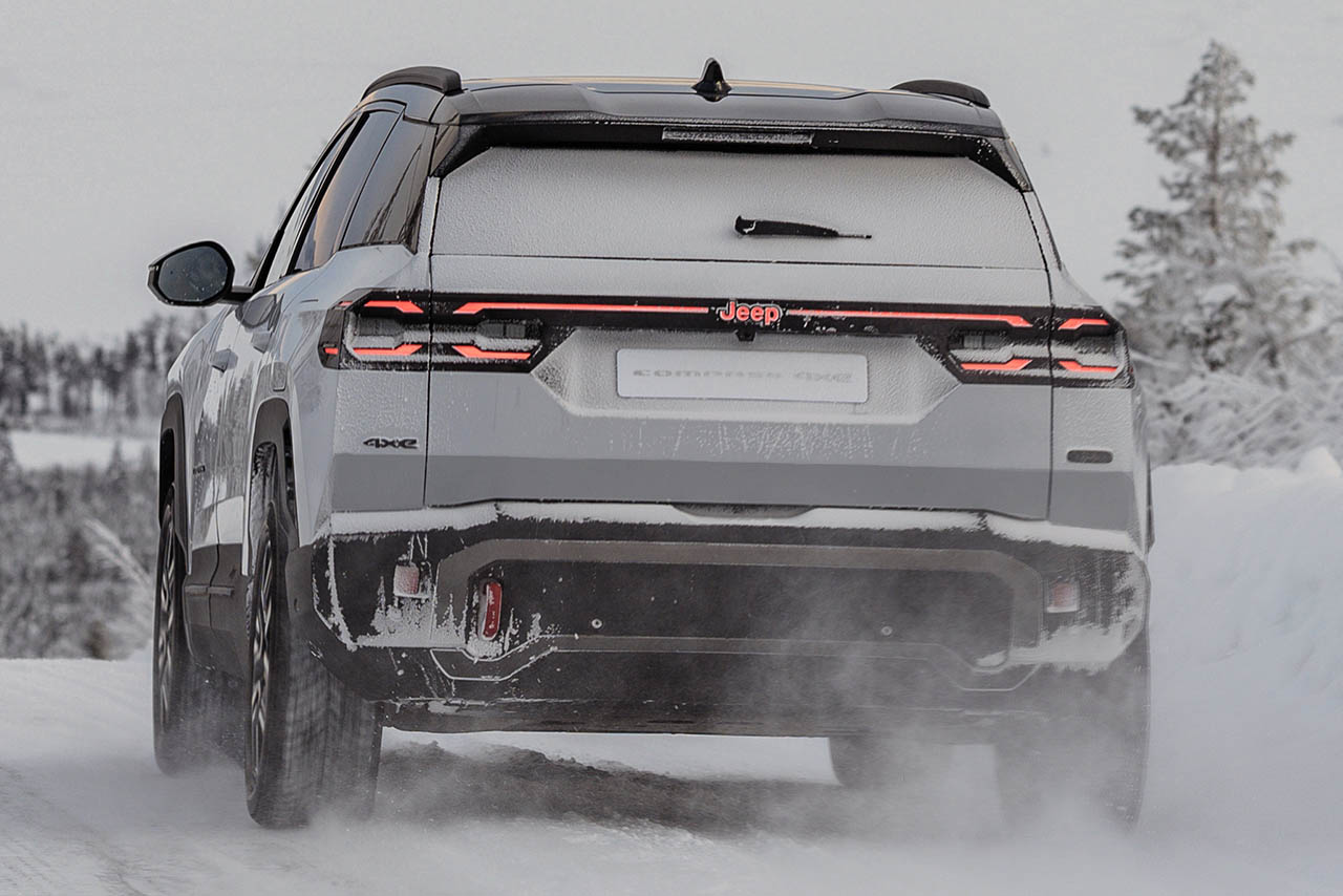 新型コンパスは、オーナーの多彩なニーズに応えるべく4種類のパワートレインを用意している。ラインナップは、最高出力145psの「e-Hybrid」、同225psの「e-Hybrid plug-in」、そして最大650kmの航続距離を誇る「BEV」で構成される。このBEVには、231psの前輪駆動モデルと375psの全輪駆動モデルの2バージョンが設定されている。全輪駆動はもちろんのこと、前輪駆動モデルであってもジープのDNAを受け継いだ伝説的な走破性と堅牢性を備えているのが特徴である。