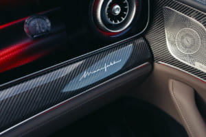 室内空間はスポーツ性能とラグジュアリーが完璧に融合している。高解像度ディスプレイを備えた最新のMB.OSを搭載し、ドライバーは大型タコメーターや車両のパフォーマンスデータなど、AMG専用の計器表示をいつでもクリアに読み取ることができる。フラットボトム形状のAMGパフォーマンスステアリングには、顧客要望の多かった、確かなクリック感を持つダイヤルやスイッチが復活した。最高級レザーを用いた多彩な内装色など、幅広いカスタマイズも可能である。