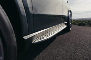 卓越した動力性能を支えるため、足回りにも抜本的な改良が施された。標準装備のエアサスペンションは走行状況に合わせて減衰力を連続的に調整し、快適な乗り心地と高い運動性能を両立させる。48Vモデルにオプション設定されるアクティブ・ロール・スタビライゼーションも新チューニングを受け、コーナリング時のロールを抑制する。新開発の横滑り防止装置と四輪駆動システムの連携により、最適なトラクションを確保する。