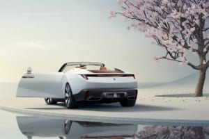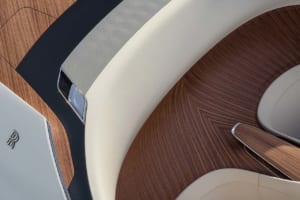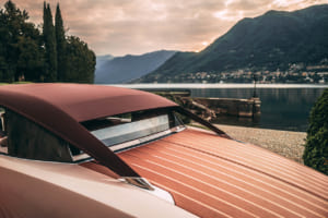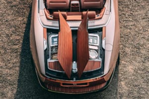 顧客が所有する1932年製ボートテイルから着想を得て、メタリックとクリスタルフレークを含む複雑なブルーで仕上げられたボートテイル。カレイドレニョ材を使用したリアデッキが蝶の羽のように開き、カクテルテーブルやスツール、パラソル、シャンパン用冷蔵庫を内蔵した「ホスティング・スイート」が現れる仕組みを備える。内装にはボヴェの特注リバーシブル時計や、ギョーシェ彫りが施された計器盤が採用されている。