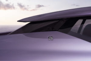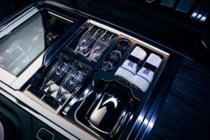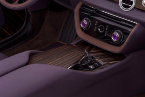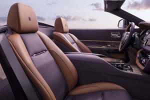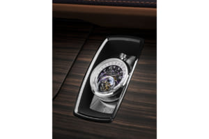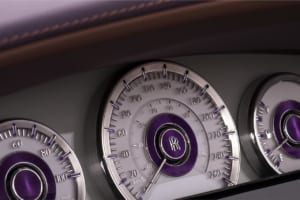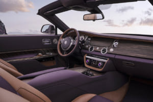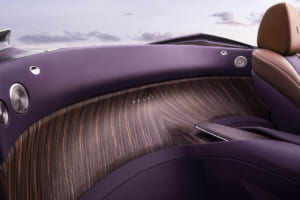 顧客の子息の誕生石であるアメジストにちなみ、微細なアルミ粉末やマイカフレークを含むパープルで仕上げられたドロップテイル。ロールス・ロイスの歴史上最も広大な面積とされる木材を使用し、ヴァシュロン・コンスタンタンによる複雑な手巻きムーブメントを備えた特注時計が組み込まれている。