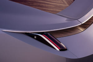 その最大の特徴は、センターブレーキライトを収める「ブレット・ティップ(弾丸の先端)」へと先細りしていくルーフラインと、レーシングヨットの船体のように車体底面へと境界線なく包み込まれるボディワークだ。車体底面が後方に向かって上向きの弧を描くことで、車名の由来である「スウェプト・テール」を形成。ロールス・ロイスはこの車を「エクストロバート(外向的な者)」と位置付けている。