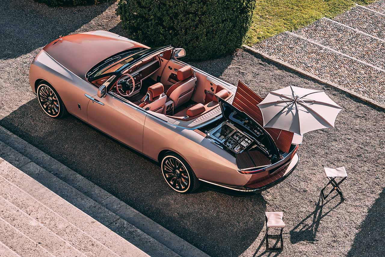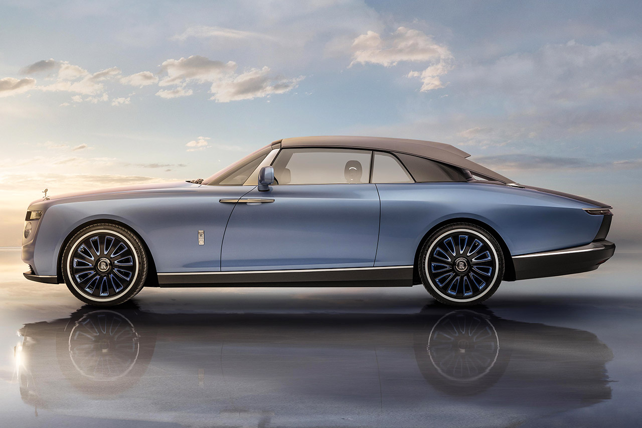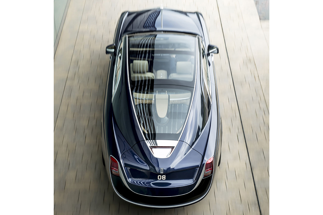1930年代のアメリカズカップを競ったJクラス・レーシングヨットにインスパイアされ、20世紀に存在した「ボートテイル」のボディ形状を現代に復活させたモデル。ボディパネルは一枚のアルミ板から手作業で成形され、全3台がそれぞれの顧客に合わせて独自に製造された(3台目は非公開)。ロールス・ロイスによれば、このモデルはもてなしを愛する「ヘドニスト(快楽主義者)」を体現しているという。