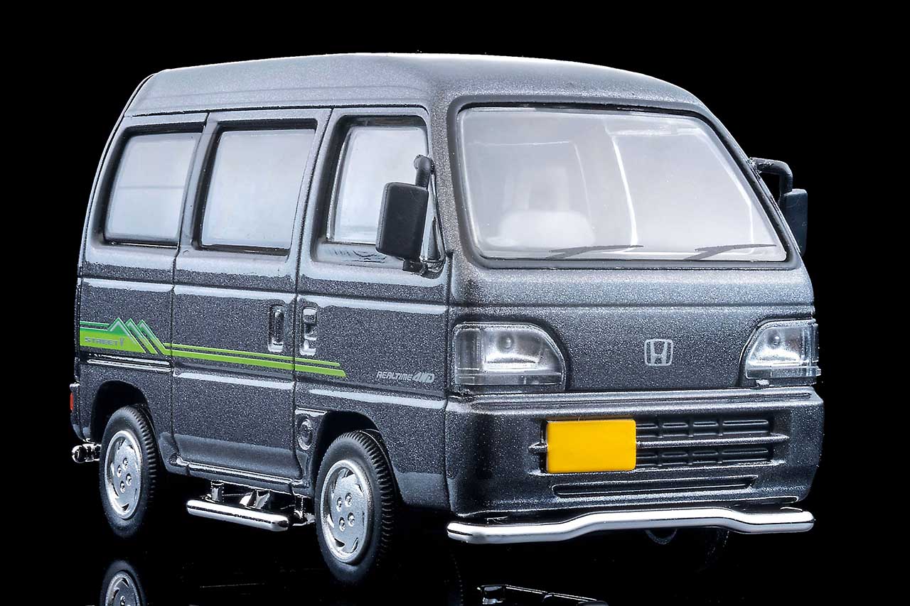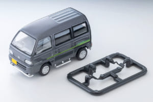 トミーテックでは4代目のアクティ・トラックをすでに製品化しているが、バン・ボディのアクティ系モデルを再現するのはこれが初めてであり、完全新金型によるものとなる。形状的には、1993年のマイナーチェンジ以降のタイプのミニカー化で、実車のボクシーなスタイルが巧みにスケールダウンされているのはもちろん、リアゲートが開閉可能である点も素晴らしい。