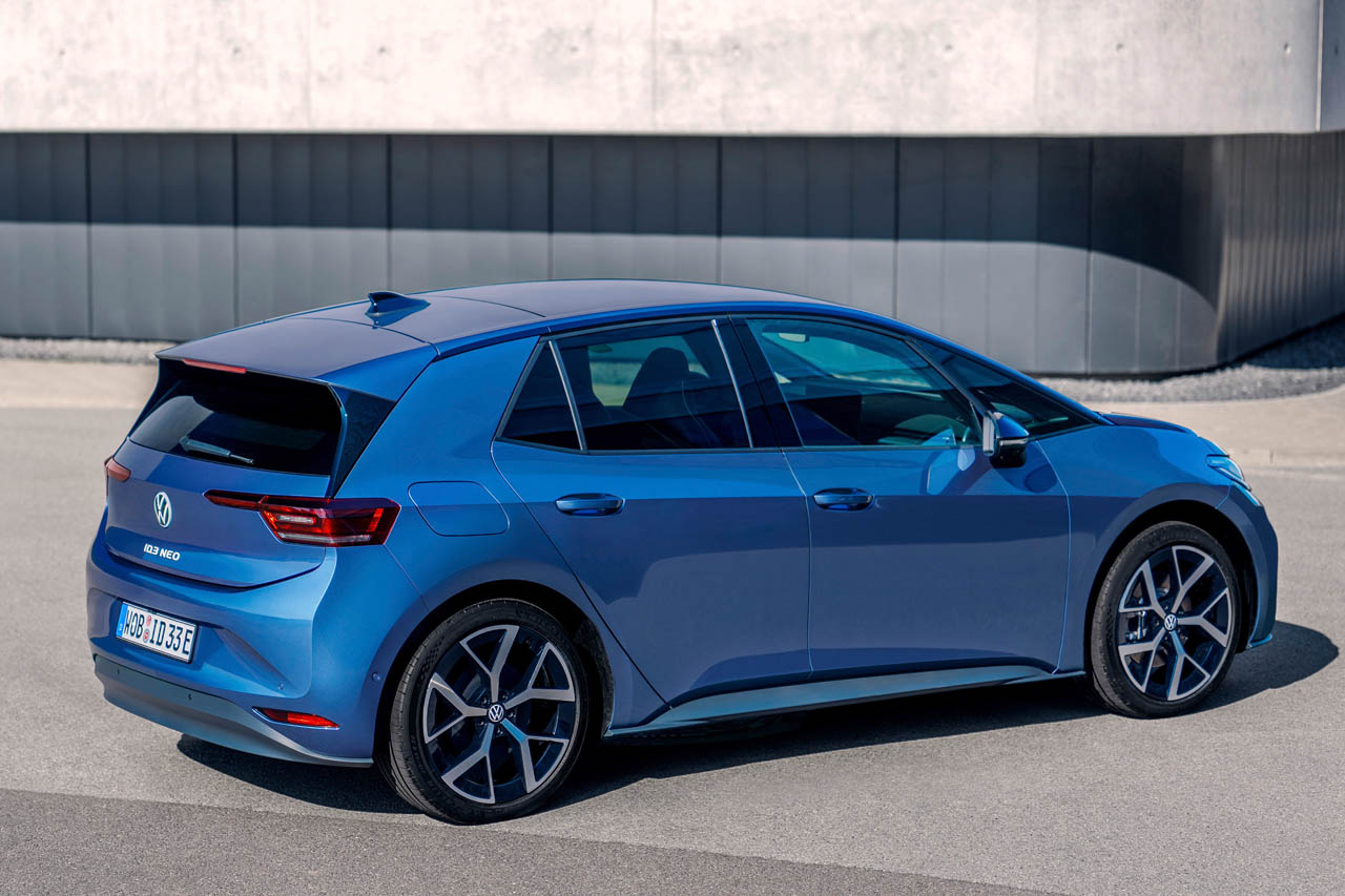 新型ID.3 ネオのエクステリアは、VWブランドおよびグループのチーフデザイナーを務めるアンドレアス・ミントが定義した「ピュア・ポジティブ」というデザイン言語に基づいている。フロントエンドは新設計され、連続したライトストリップと光るロゴが、特徴的な新しいID.ファミリーの顔つきを作り出している。また、ルーフやリアスポイラー、トランクリッドがボディと同色に塗装されたことで、より長く、フラットでダイナミックな印象を与える外観へと進化を遂げた。