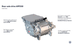 パワーユニットには、従来モデルよりも高いトルクと低い消費電力を誇る新開発の高効率ドライブシステムが採用された。これにより、搭載されるバッテリーのうち最も容量の大きいものを選択した場合、最大630km(WLTPモード)という長大な航続距離が可能となる。