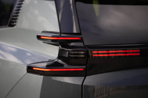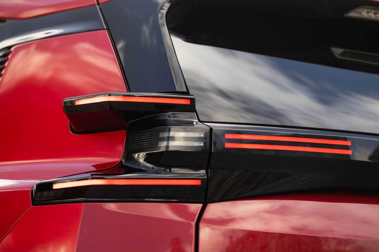 中でも目を引くのは、2本バーとセンタークラスタによる新たなライトシグネイチャーが際立つマトリックスLEDヘッドライトもさることながら、整流板としての機能を兼ねてボディから突き出るように備わるリアコンビランプだ。