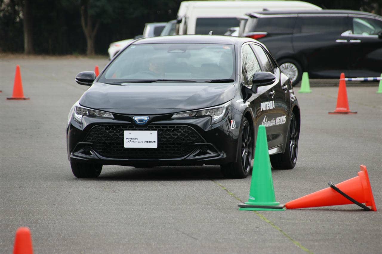 当日は、ポテンザ Adrenalin RE-004の後継モデルとして登場した「RE-005」にも試乗することができた。そのポジショニングは前述した通り、「カジュアルスポーツ」。普段はクルマを日常の足として常用しながら、休日に高速道路やワインディングで「気持ち良く走りたい」というユーザーに向けて作られたスポーティタイヤだ。