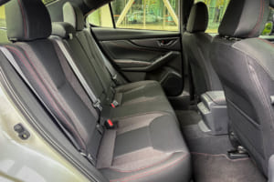 個体のグレードはカナダ仕様でも最もベーシックな類になるそうだが、日本仕様のGT-H EXにほぼ相当する。ただしアイサイトXは未採用、サイドブレーキは手引きなのでアイサイトも完全停止保持はなし、そしてSI-DRIVEもなしと装備類は簡略化されている。日本においてスバルのセダンといえば頑なにリアワイパーが標準装着であることを思い浮かべるが、カナダ仕様にはそれもない。おかげでリアビューはすっきりしている。小さなリアスポイラーは形状的にSTI Sport#と同じものと思われるが、カナダ仕様では標準装備となる。
