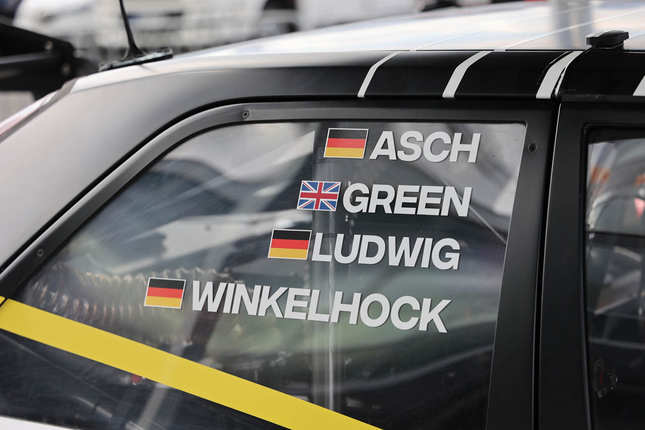 サイドウィンドウに貼られているドライバー名を見て、思わず目を疑った。ローランド・アッシュ、クラウス・ルドヴィッヒ、ヨアヒム・ヴィンケルホックと言えば、1990年代のDTMやル・マン24時間レースなどで活躍したドライバーだ。しかし、実際の彼らのフルネームは、セバスチャン・アッシュ、ルカ・ルドヴィッヒ、マルクス・ヴィンケルホックであり、それぞれ往年のスタードライバーの子息なのである。