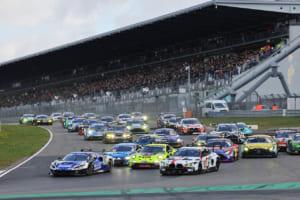 4月18日の公式予選で、メルセデスAMG GT3、ポルシェ911 GT3 R、BMW M4 GT3やランボルギーニ・ウラカンGT3、アウディR8 LMS GT3など居並ぶ最新型FIA GT3車両にまじり、野太いV6ツインターボのエキゾーストサウンドを奏でて走る姿は、まさに迫力満点。2台のHWA EVO. Rは、出走127台中総合39位、同43位であったが、デビューレースだとすればかなり上等だと言えるだろう。