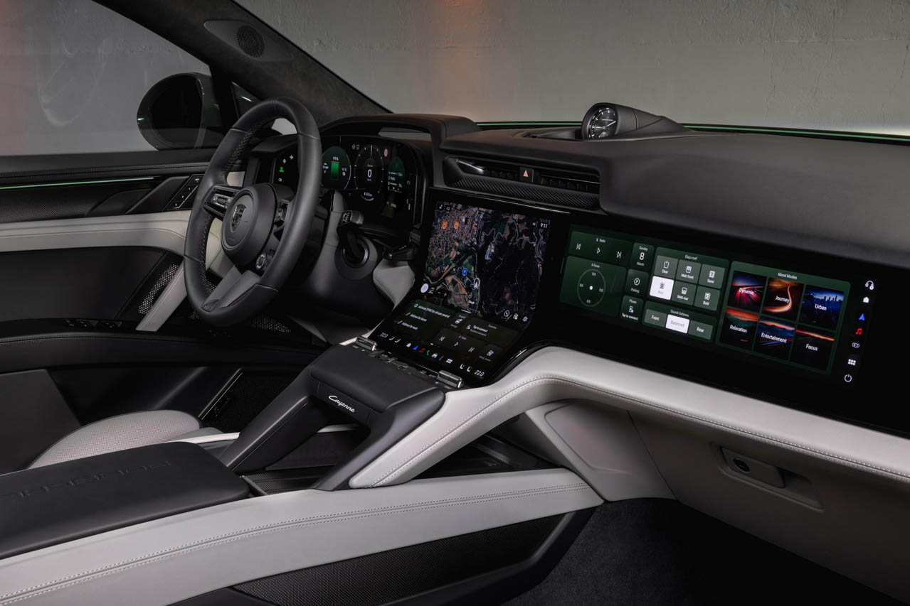 車内には、デジタルかつドライバー志向の操作コンセプトであるポルシェドライバーエクスペリエンスが採用されている。フルデジタルのインストルメントクラスター、中央のフローディスプレイ、さらにオプションとなる助手席用ディスプレイやARヘッドアップディスプレイなどによって特徴付けられている。パーソナライズ可能なウィジェットやカスタマイズ可能なディスプレイテーマにより、個別化と直感的な操作に重点が置かれている。