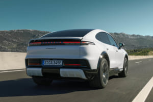 この傾斜したルーフラインを持つクーペ形状は、空気抵抗の低減にも大きく貢献している。新型モデルのCd値は0.23を達成しており、SUVモデルの0.25と比較して優れた空力特性を誇る。この空気抵抗の低減により、複合WLTP航続距離はSUVモデルと比較して最大18km延びており、モデルによっては最大669kmという長距離走行を実現している。また、可動式冷却エアフラップやアダプティブリアスポイラーなどの機能を備えたポルシェアクティブエアロダイナミクスシステムも搭載されている。
