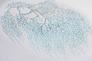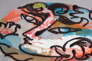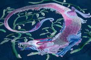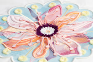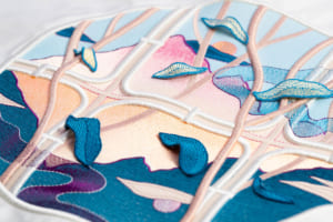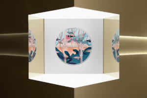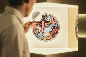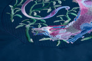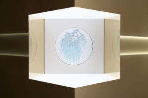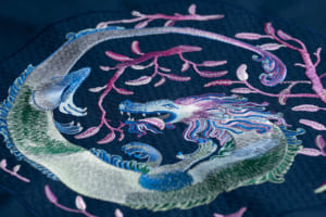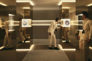 続く「記憶とモチーフ」の空間は、より親密で落ち着いた雰囲気に包まれている。4人のアーティストがミラノの記憶をもとに描いたイラストと、それに応える形でレンジローバーの素材チームが制作したオリジナルの刺繍アートワークが展示される。空間全体に途切れなく流れる専用のサウンドスケープと相まって、無限の反射を繰り返す鏡張りのショーケースが、ビスポークの持つ無限の可能性を静かに訴えかけてくる。