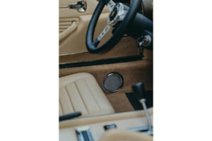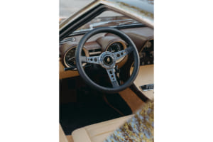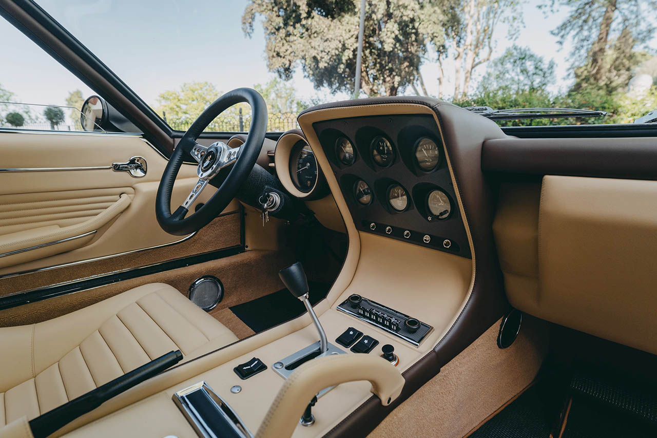インテリアの再生も慎重に行われた。エアコン装着のための機能の復元から始まり、ハザードランプの再設置、より小径のステアリングホイールへの交換、そして延長されたハンドブレーキレバーの装着などが実施された。外装色は「ルチ・デル・ボスコ(ブラウン)」、内装は「セナペ」カラーの組み合わせである。