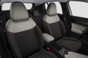 インテリアにおいても、本モデル独自の洗練された空間づくりが徹底されている。フロントシートには、新色となるグラファイト(落ち着いた濃い色合いの灰色)とアイボリーを組み合わせた、ツートーンのエコレザーシートが初採用された。シックな色調の中に明るさを添えるこの配色は、室内空間に心地よいリズムと開放感をもたらし、乗員を優しく迎え入れる。