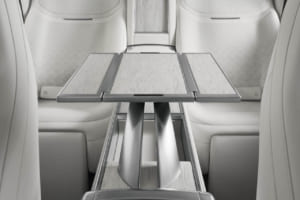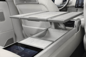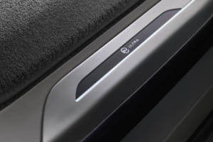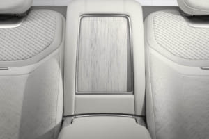 さらに、特許技術で自然の特性を保持した天然のラタンパーム(籐・ヤシ)の突板が、室内に繊細な質感と奥行きをもたらす。オーキッドホワイトの色合いで独自の木目が強調されたこの突板は、タッチスクリーンの下部から後席の電動展開式クラブテーブル、クーラーボックスの電動ドアにまで続く。これに光沢のあるホワイトセラミック仕上げやカラーマッチしたスピーカー、シートベルト、専用トレッドプレートなどが組み合わされ、明るく穏やかなテーマを徹底している。また、ウールとリサイクルポリエステルをブレンドしたクヴァドラ社の非皮革テキスタイルを使用したクッションも用意され、現代的な快適さを提供する。
