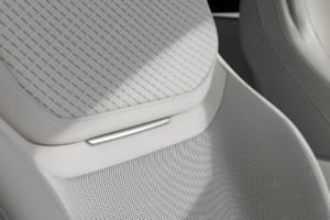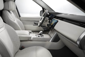インテリアは、新開発の専用ライトデュオトーン「オーキッドホワイト」と「シンダーグレー」を組み合わせた「Ultrafabrics」によるレザーフリーインテリアを採用している。シートには精巧なレーザー加工によるモザイク模様のパーフォレーションが初採用され、彫刻的な上部からバックレストに至るまで、統一感のある非常にディテールに富んだ表面処理がなされている。